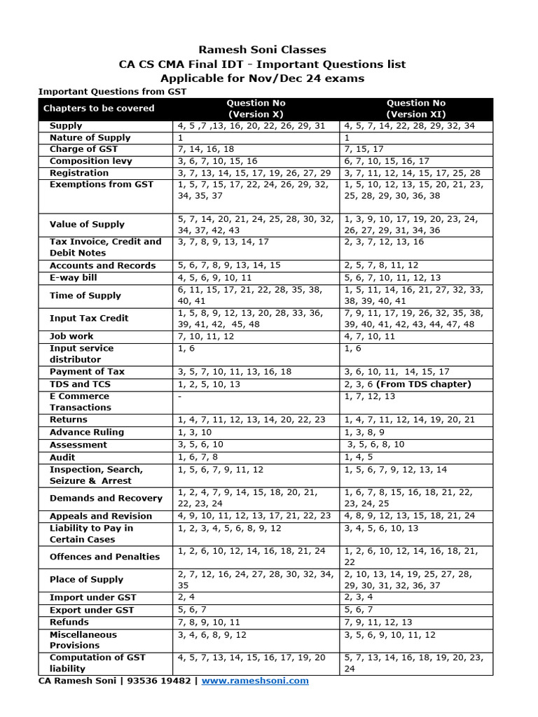 TDS and TCS 1, 2, 5, 10, 13 2, 3, 6 (From TDS chapter)