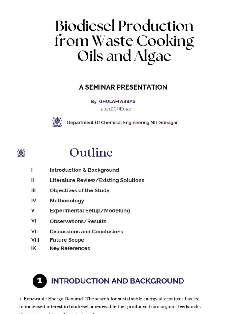 - Statistical Analysis Use statistical tools to compare yield and quality between waste oils and algae.