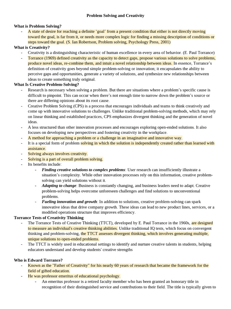 - Torrance (1969) defined creativity as the capacity to detect gaps, propose various solutions to solve problems,