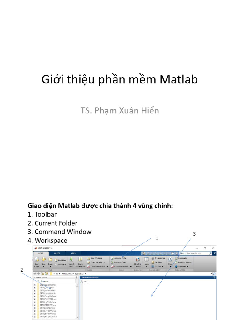 Giao diện Matlab được chia thành 4 vùng chính: