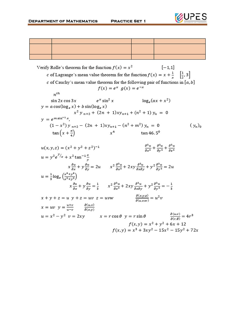 Department of Mathematics Practice Set 1
