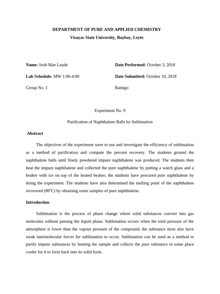 separate the impurities by means of sublimation. The students heated the powdered naphthalene