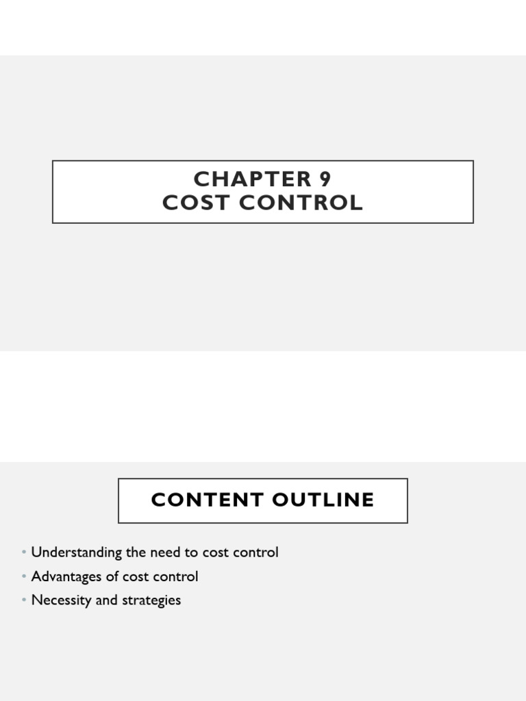 • Establish realistic ‘budgeted costs’ based on your actual experience.