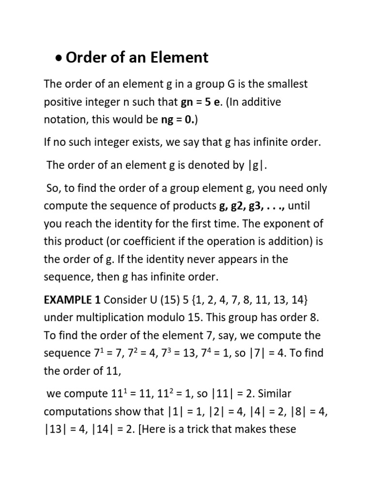 • Order of an Element