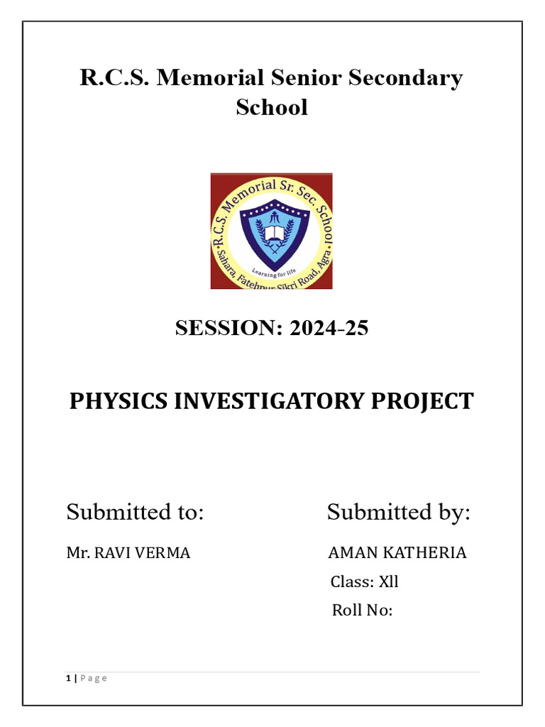 PHYSICS INVESTIGATORY PROJECT