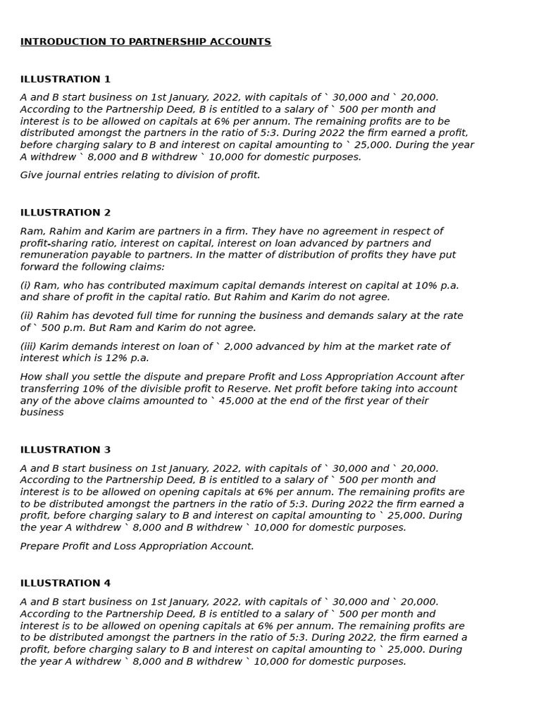 Rahim is entitled to a salary of ` 400 per month. Interest is allowed on capitals and is