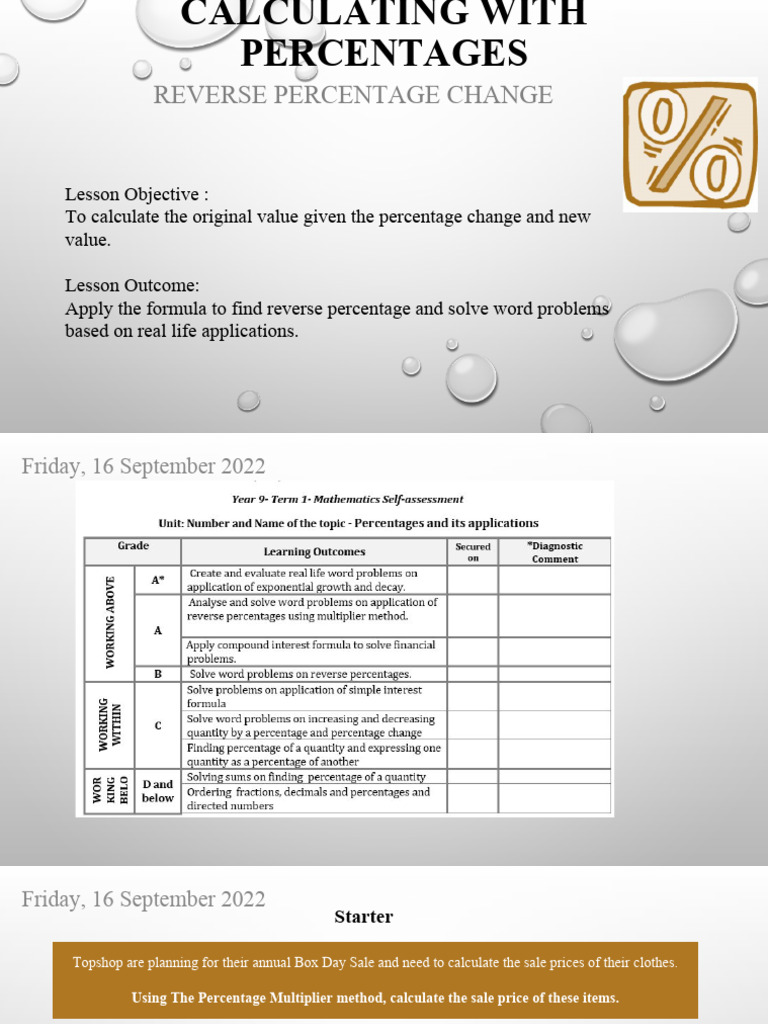 Friday, 16 September 2022 Reverse Percentages
