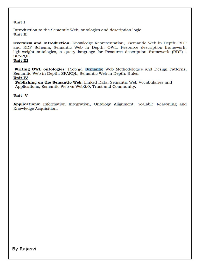 o RDF (Resource Description Framework): RDF provides a framework for describing resources on the