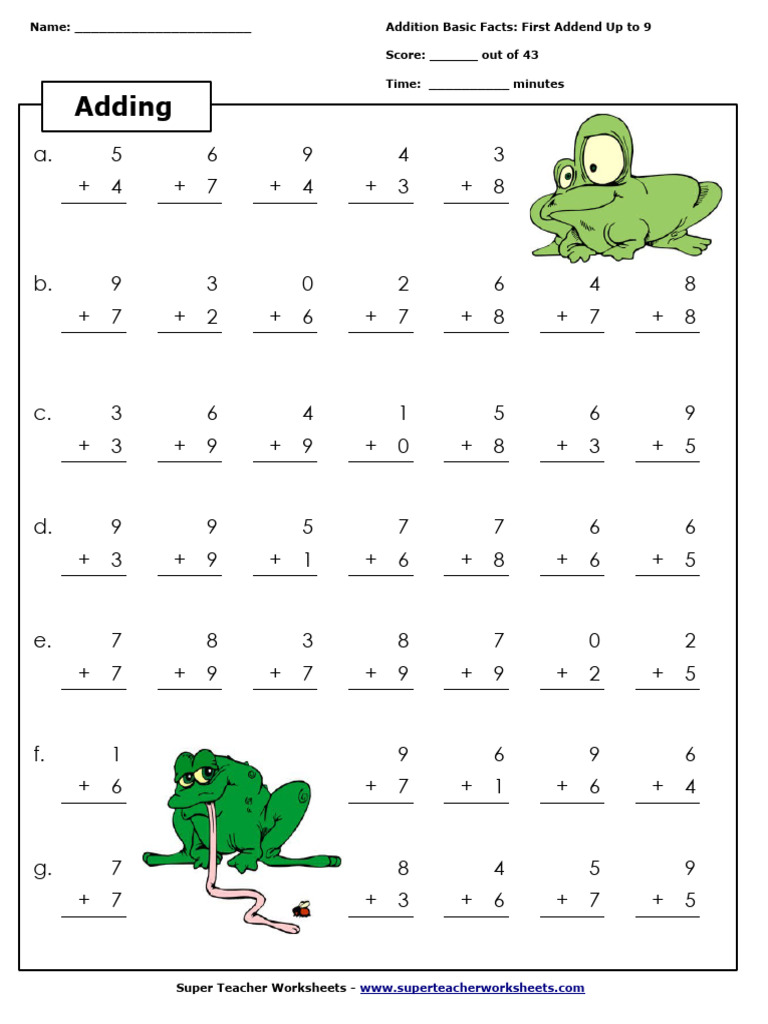 Name: ______________________ Addition Basic Facts: First Addend Up to 9
