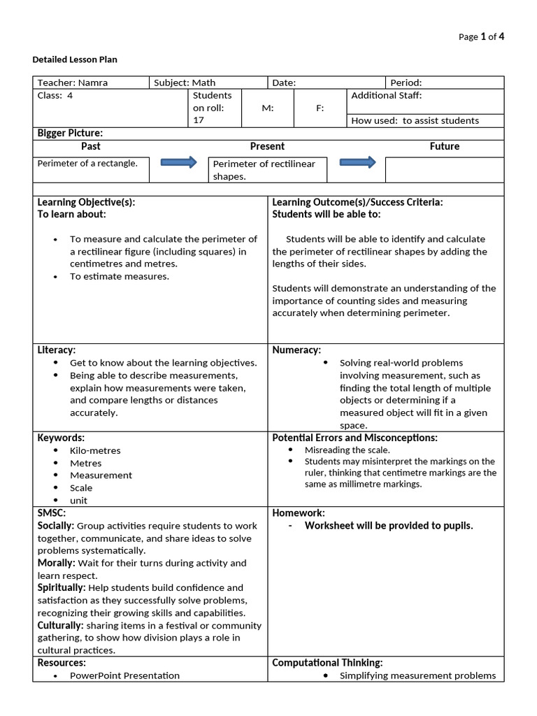 To measure and calculate the perimeter of Students will be able to identify and calculate