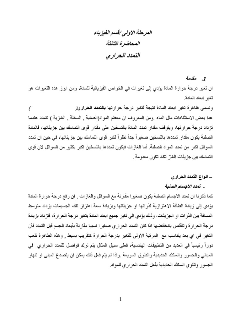 ثبٌّبء ارا رغ١شد دسعخ ؽشاسرٗ ِٓ 25 oCاٌ . 65 oC ٝػٍّب اْ ِؼبًِ اٌزّذد اٌؾغٌٍّ ٟضعبط ٠غبٞٚ