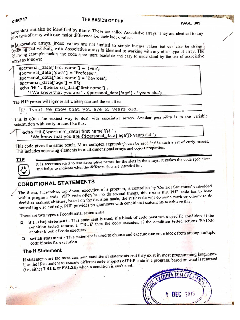 ! ) -quar 17 ‘THE BASICS OF PHP PAGE 31t