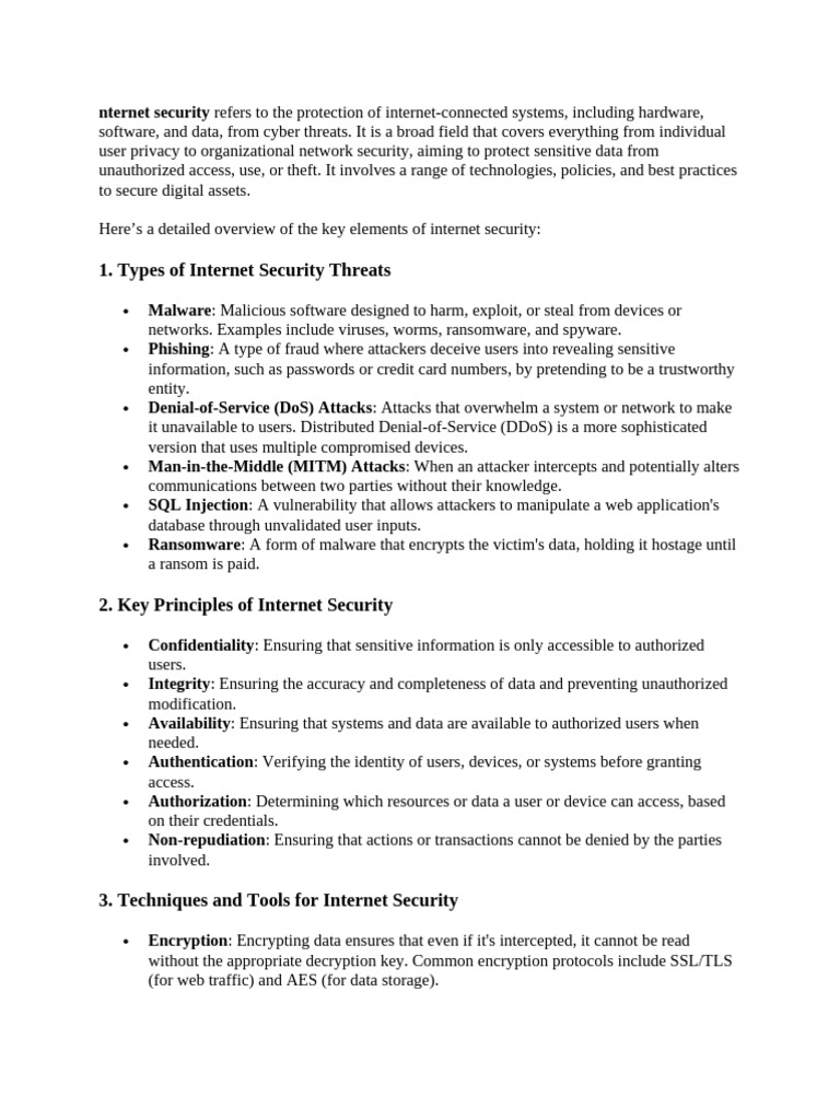 Here’s a detailed overview of the key elements of internet security: