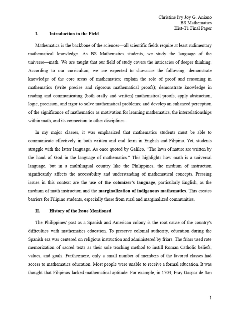 mathematical knowledge. As BS Mathematics students, we study the language of the