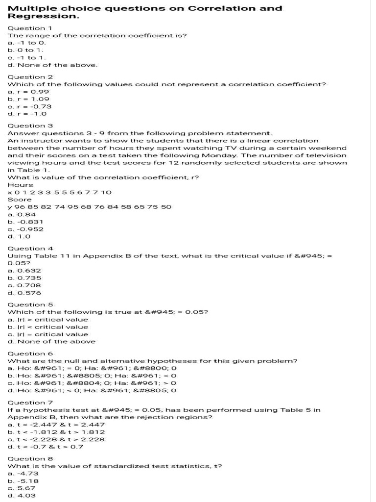 a. Ho: ρ = 0; Ha: ρ &.#8800; 0