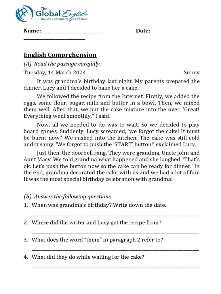 1. When was grandma’s birthday? Write down the date.