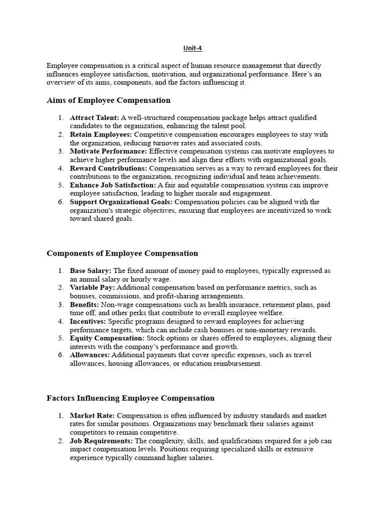 Employee compensation is a critical aspect of human resource management that directly