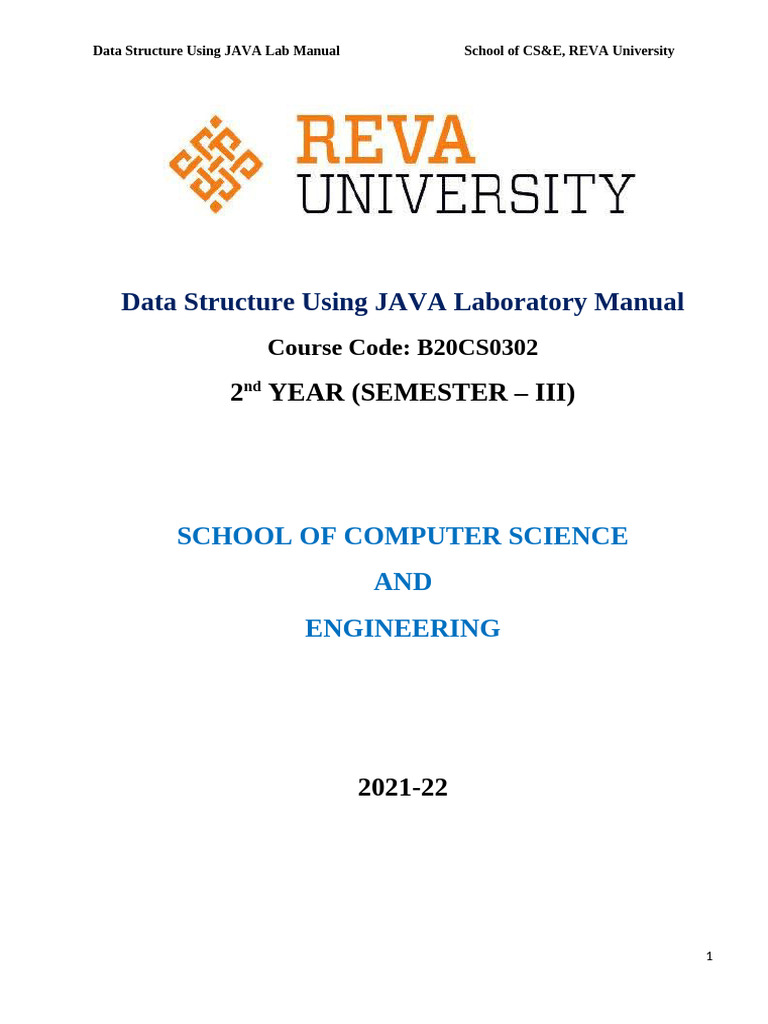 Data Structure Using JAVA Lab Manual School of CS&E, REVA University