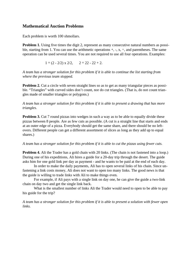 Mathematical Auction Problems