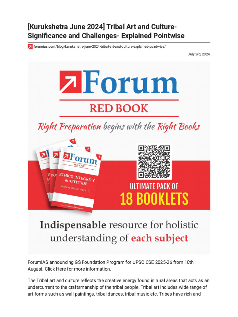 [Link]/blog/kurukshetra-june-2024-tribal-art-and-culture-explained-pointwise/