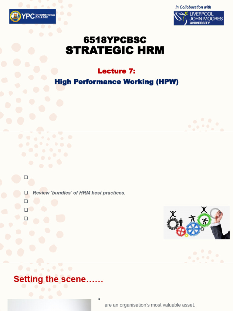 ❑ ‘High Performance Working is a general approach to managing organisations that