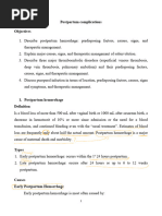 •Describe postpartum hemorrhage: predisposing factors, causes,