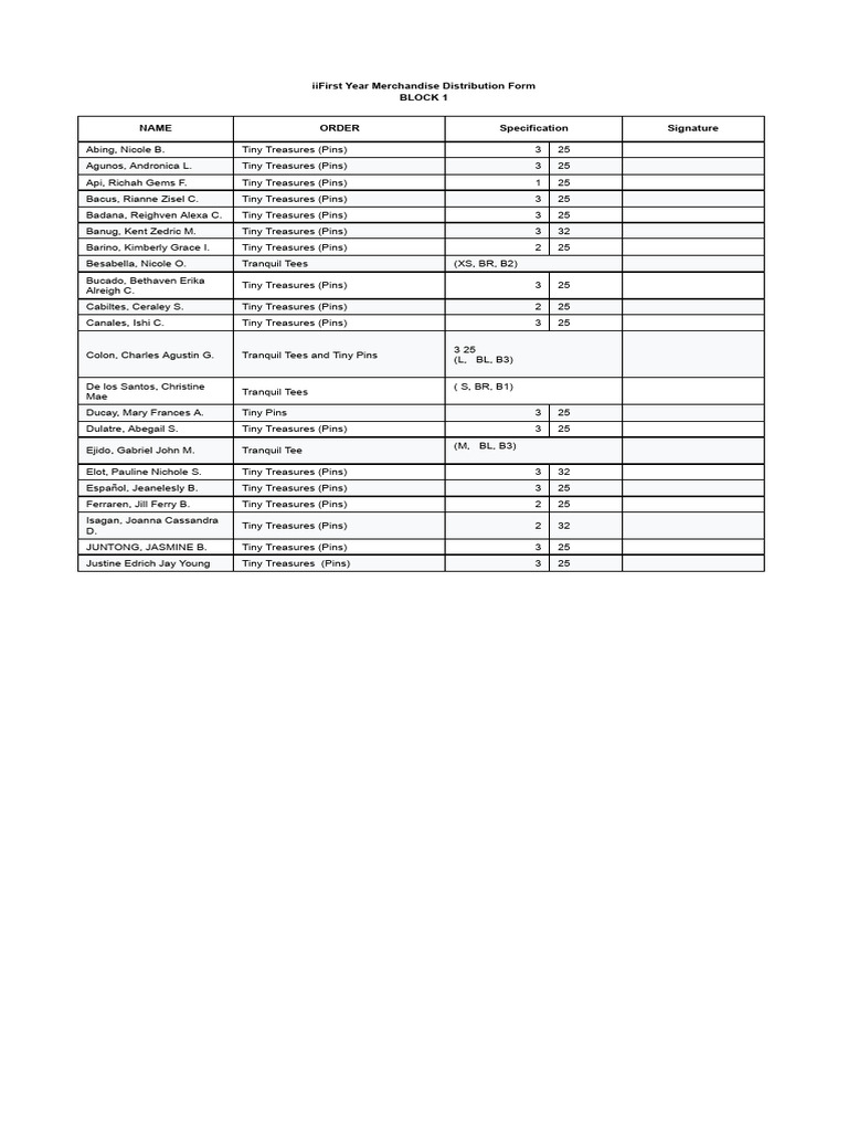 iiFirst Year Merchandise Distribution Form