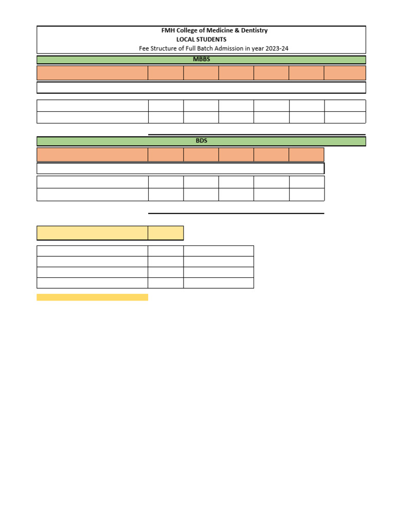 Optional Fee & Charges For MBBS & BDS PKR