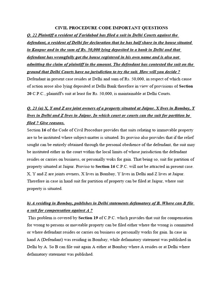 CIVIL PROCEDURE CODE IMPORTANT QUESTIONS