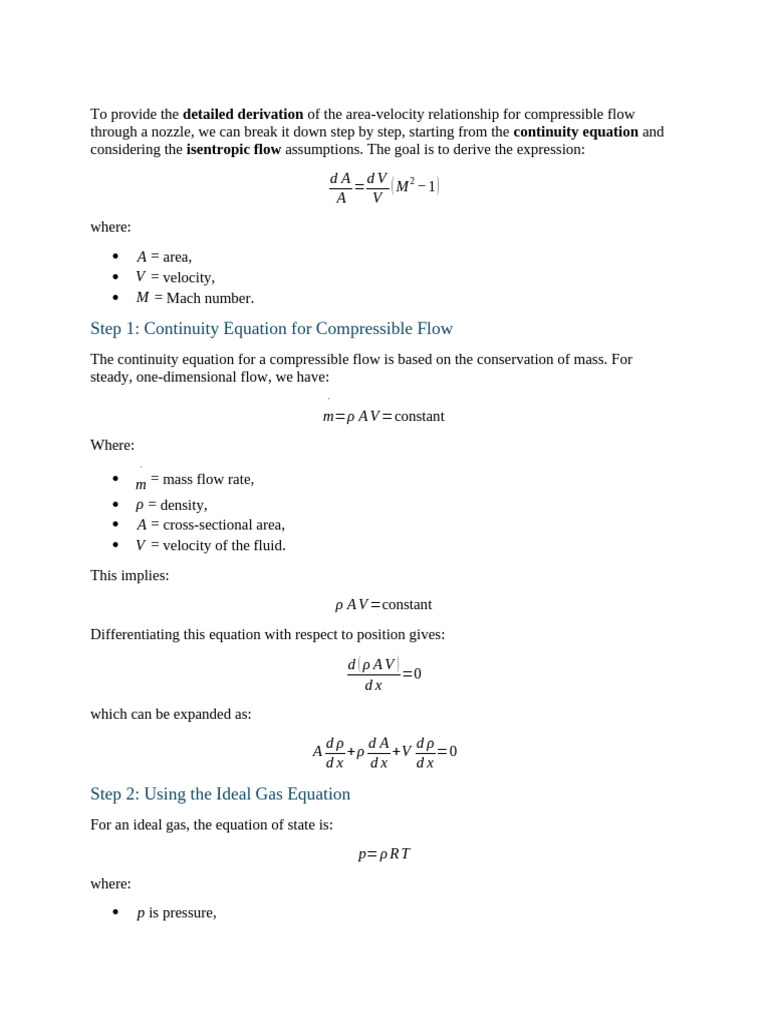 through a nozzle, we can break it down step by step, starting from the continuity equation and