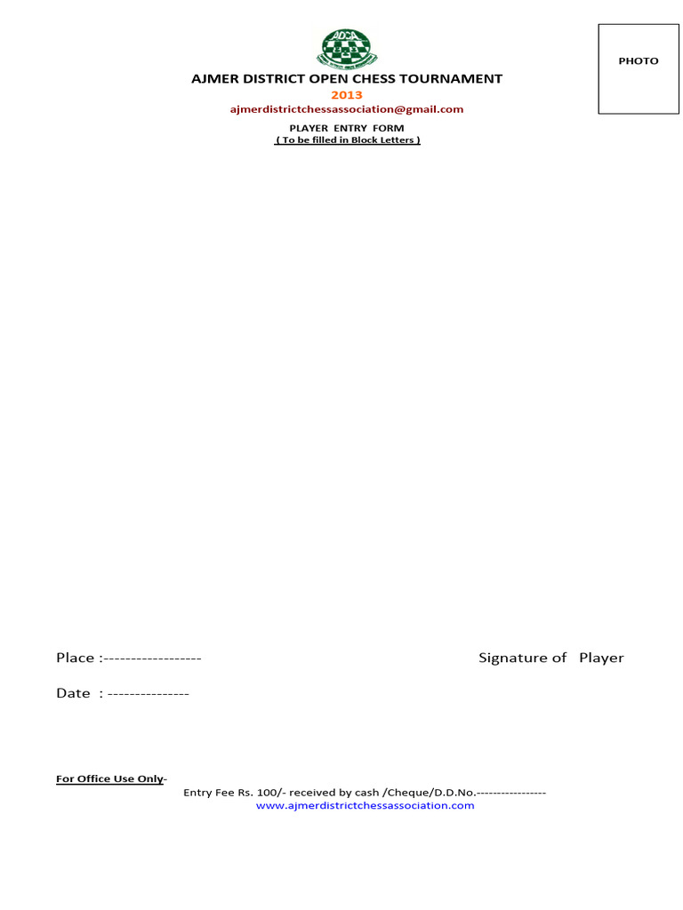 FIDE ID NO : -------------------AICF Regn No. ---------------