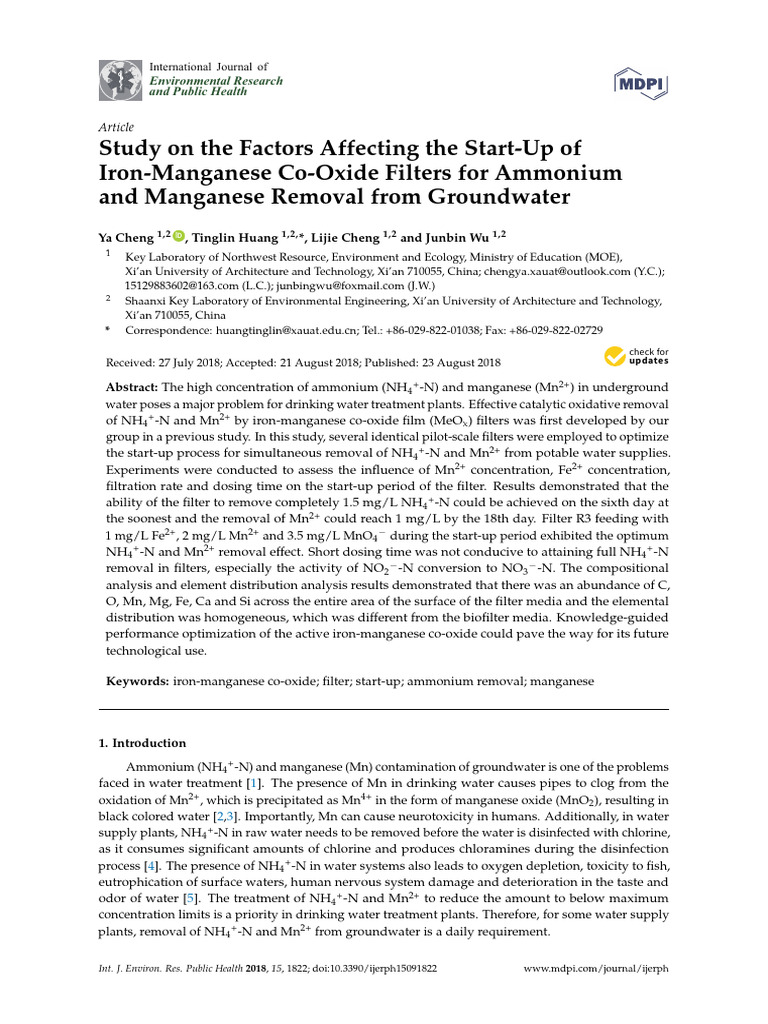 23. Cheng, Y.; Li, Y.; Huang, T.; Sun, Y.; Shi, X.; Shao, Y. A comparison study of the start-up of a MnOx filter for