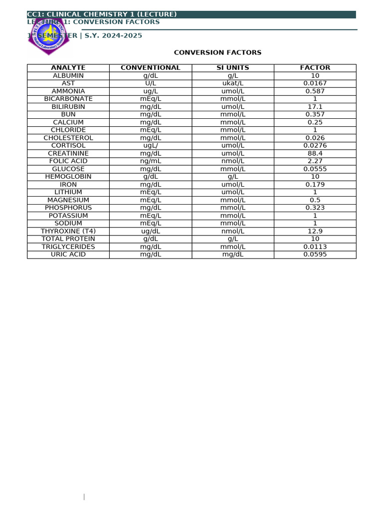 CC1: CLINICAL CHEMISTRY 1 (LECTURE)