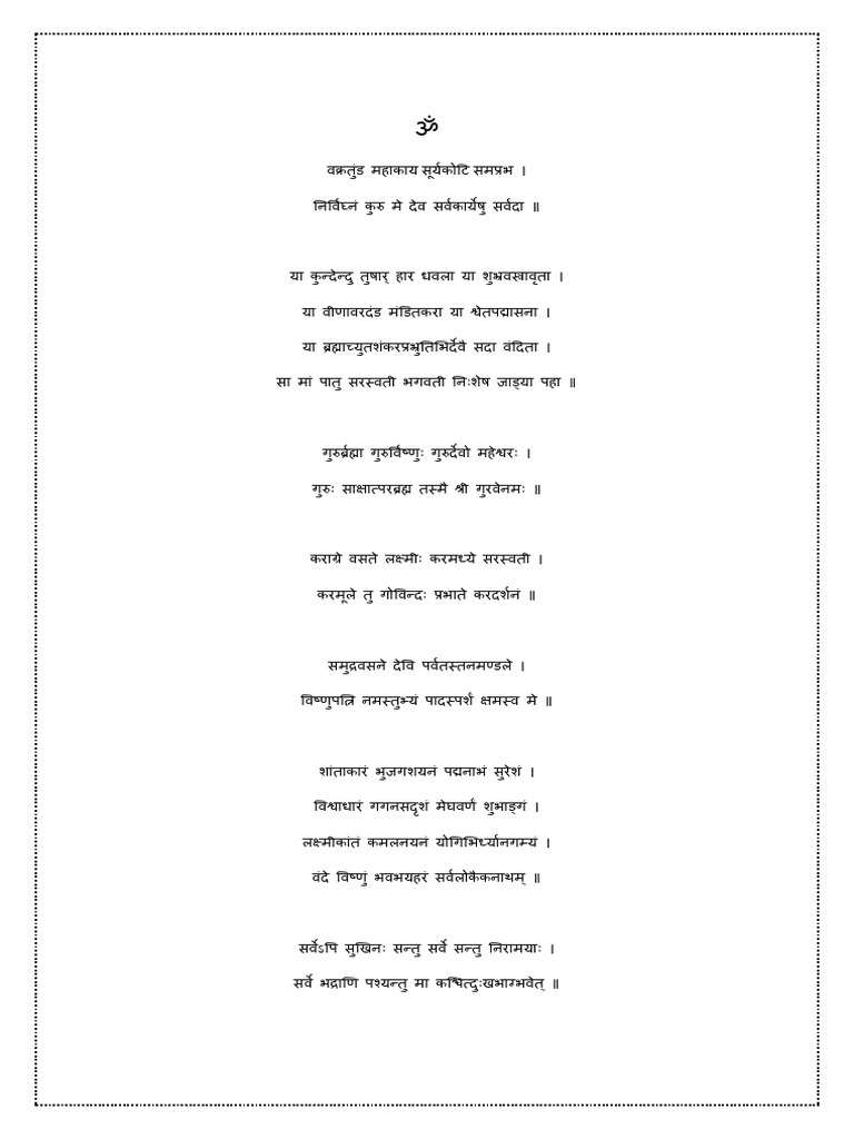 सवे भद्राखण पश्यन्त मा कश्चित्दिःिभाग्भवेत ् ॥