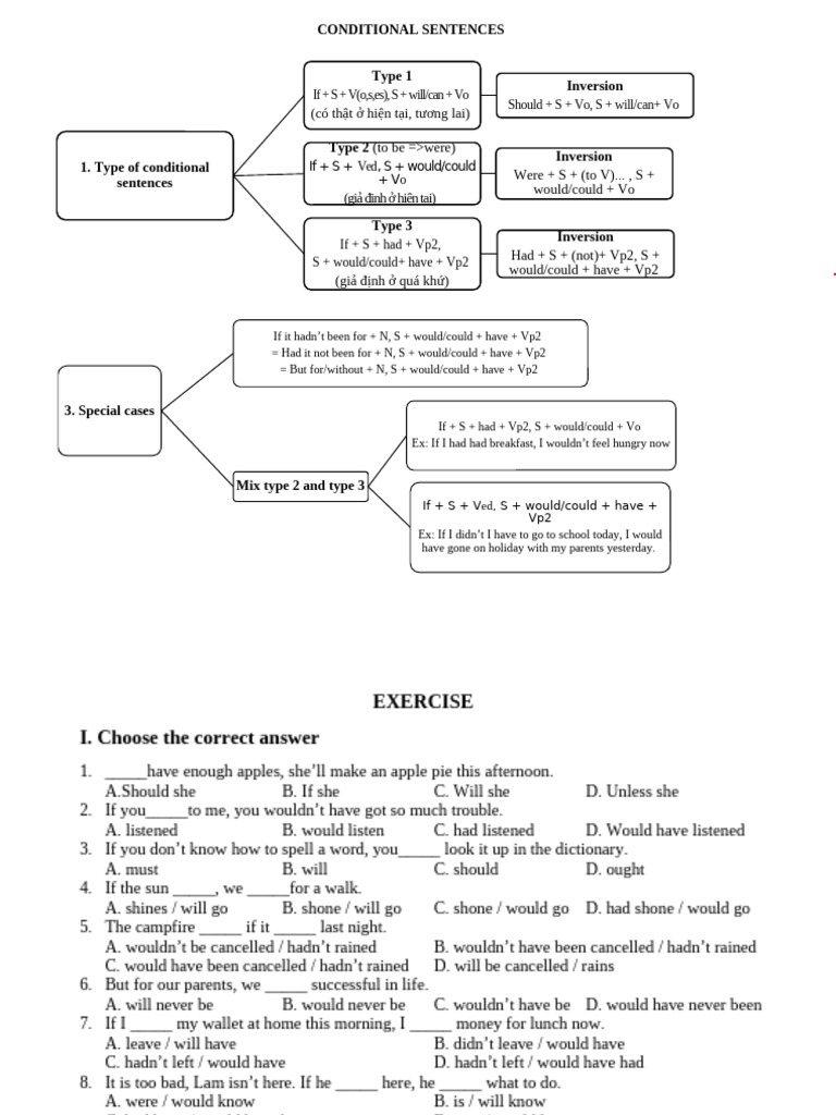 1. _____have enough apples, she’ll make an apple pie this afternoon.
