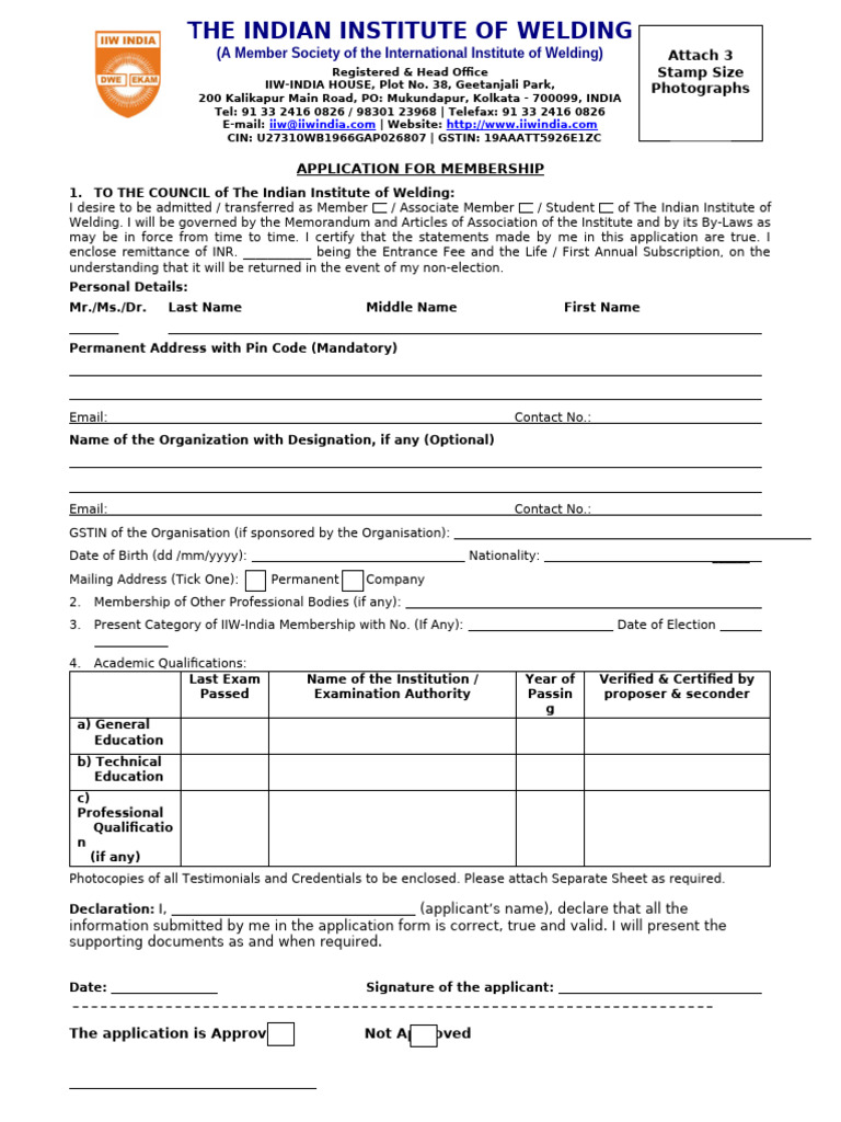experience, age, position in the field of Welding and also the Students Membership which are as follows.