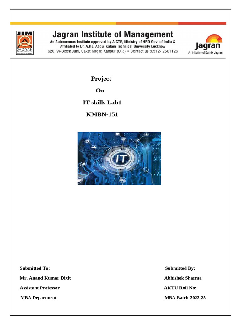 This is to certify that Mr. Abhishek Sharma student of MBA first semester (session