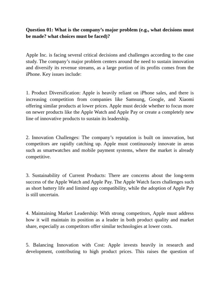 Apple Inc. is facing several critical decisions and challenges according to the case