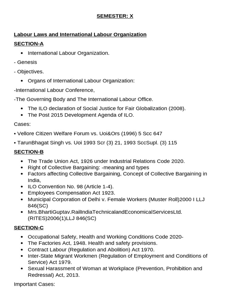 Labour Laws and International Labour Organization