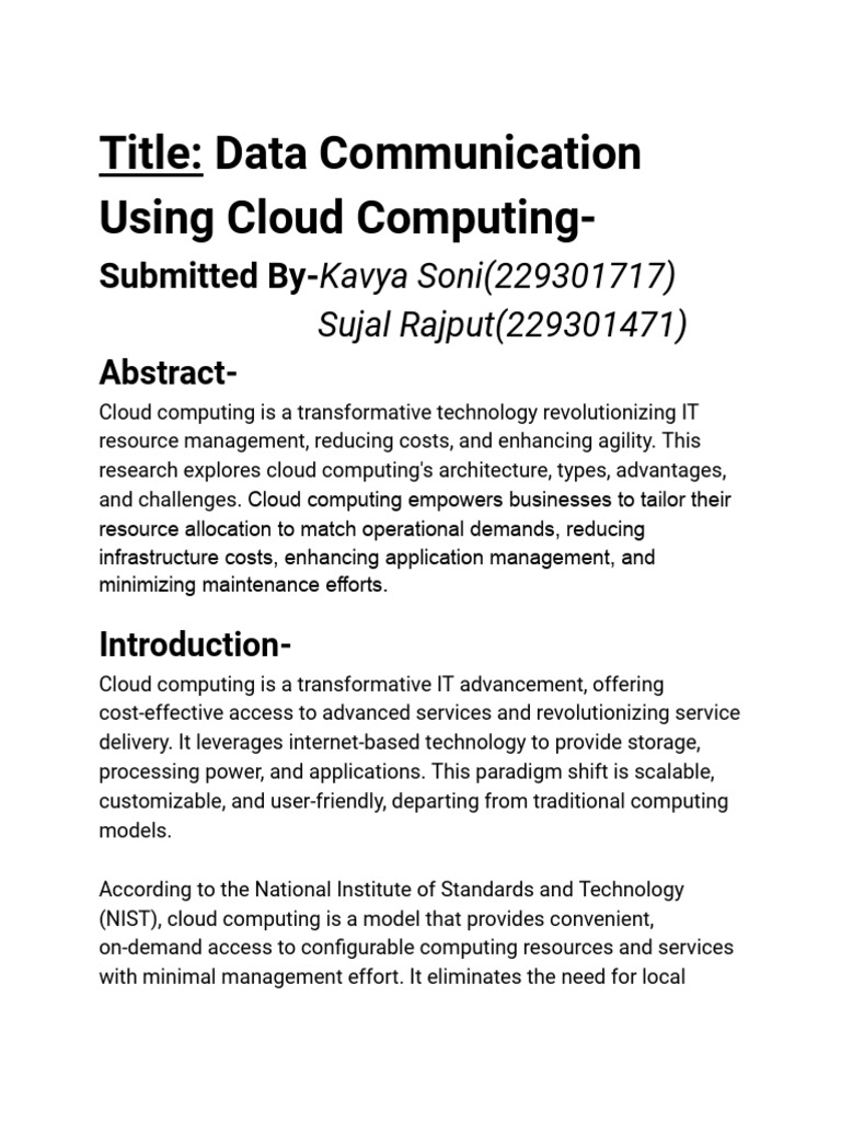 research explores cloud computing's architecture, types, advantages,