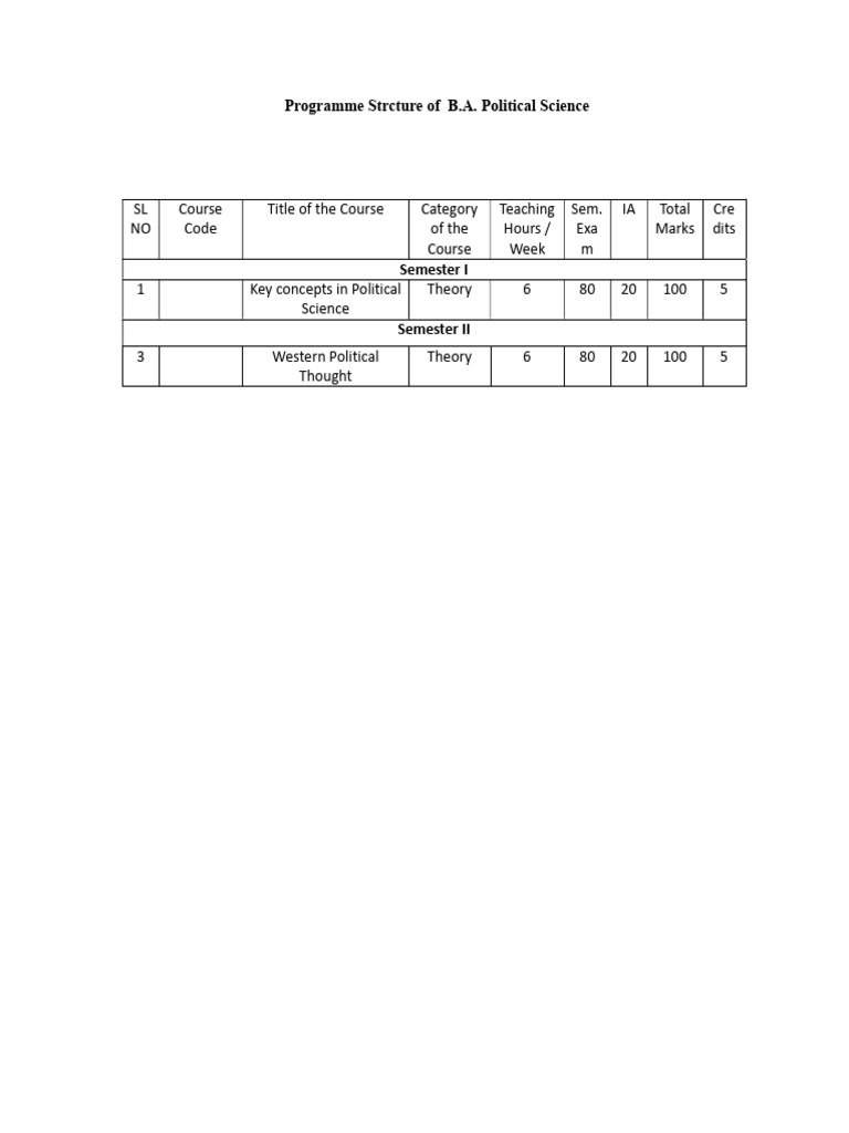 SL Course Title of the Course Category Teaching Sem. IA Total Cre
