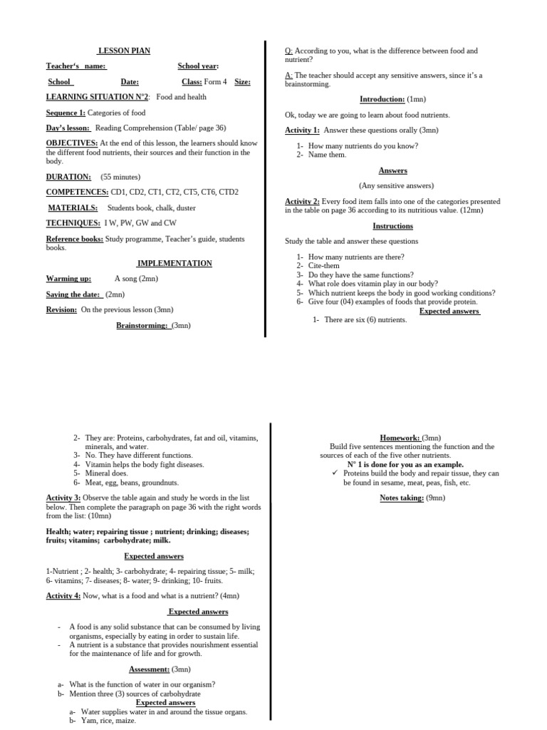 MATERIALS: Students book, chalk, duster in the table on page 36 according to its nutritious value. (12mn)