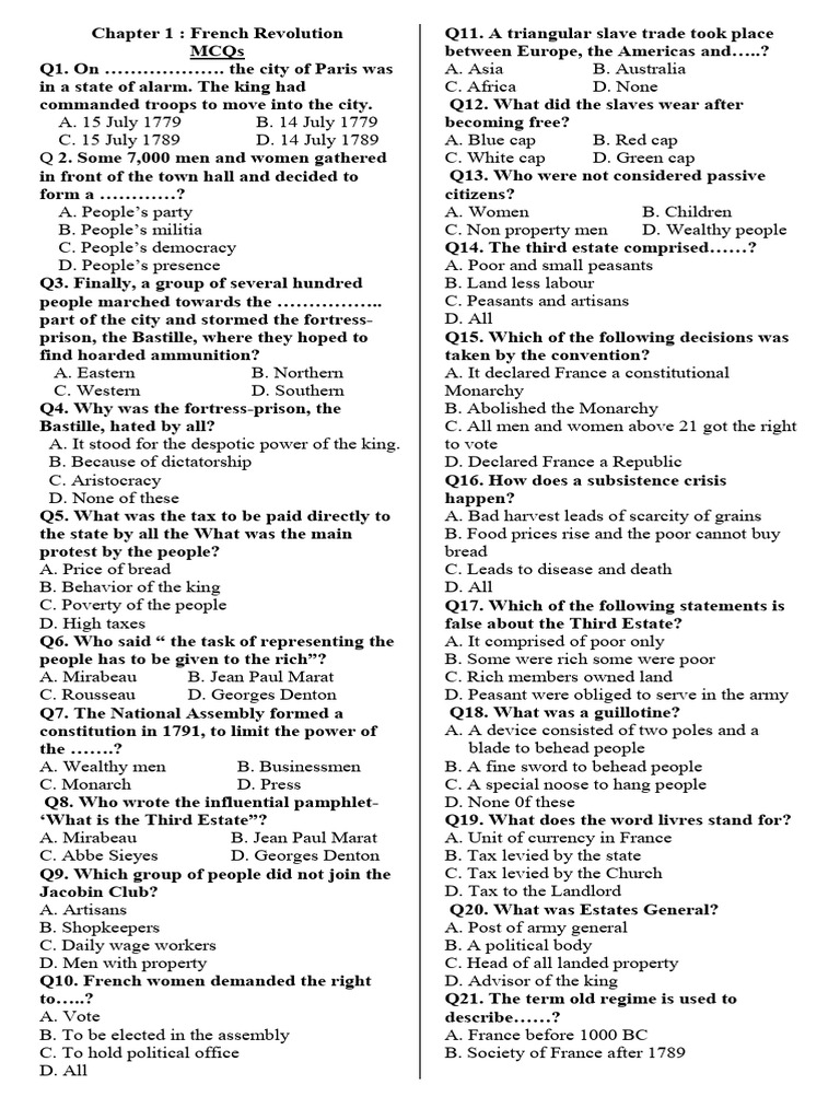 Chapter 1 : French Revolution Q11.