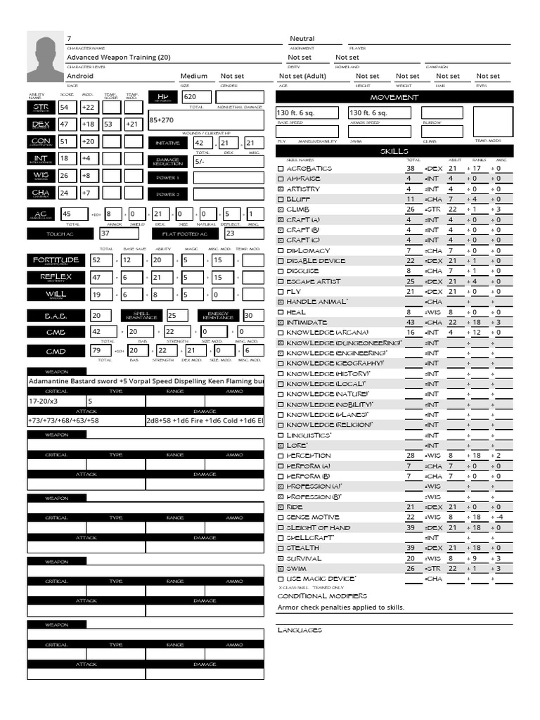 52 = 12 + 20 + 5 + 15 + Disable Device 22 =DEX 21 +1 +0