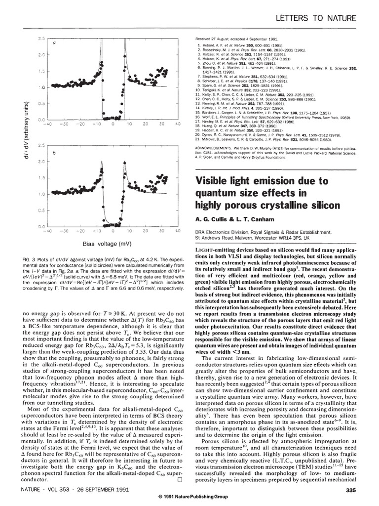 2. Canham, L. T. Appl. Phys. Lett. 57, 1046 - 1048 (19 90).