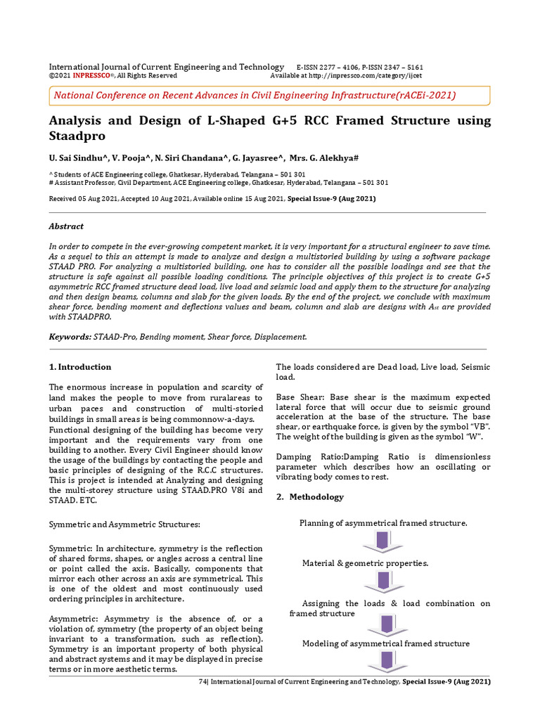 U. Sai Sindhu et al Analysis and Design of L-Shaped G+5 RCC Framed Structure using Staadpro