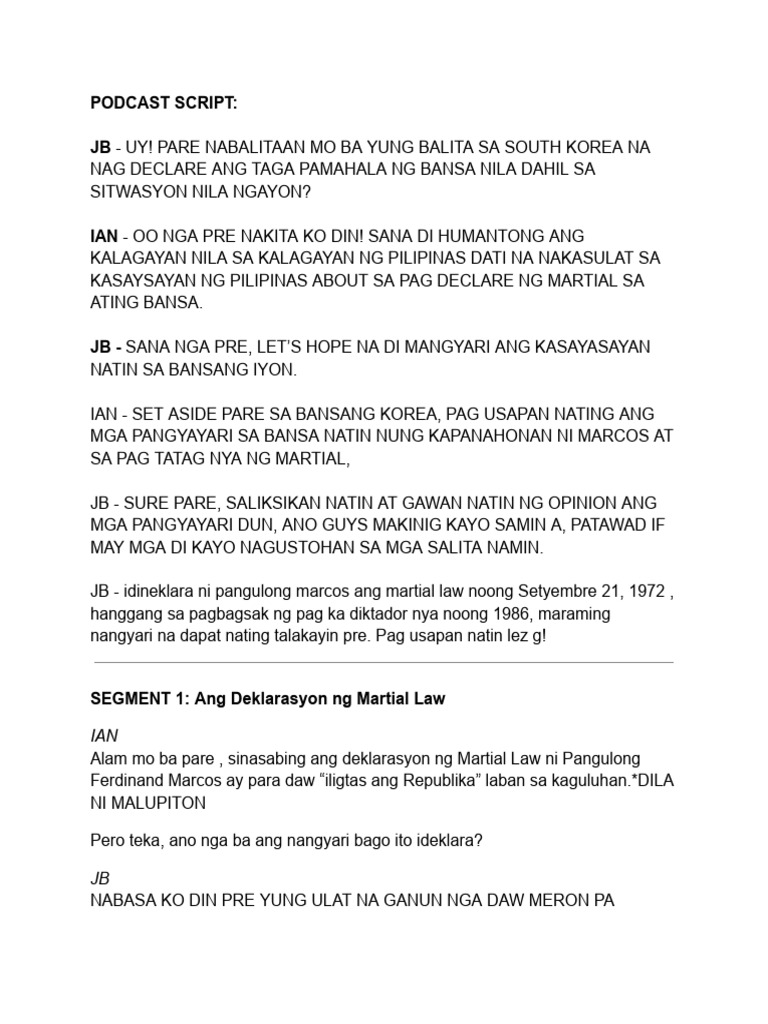 SEGMENT 1: Ang Deklarasyon ng Martial Law