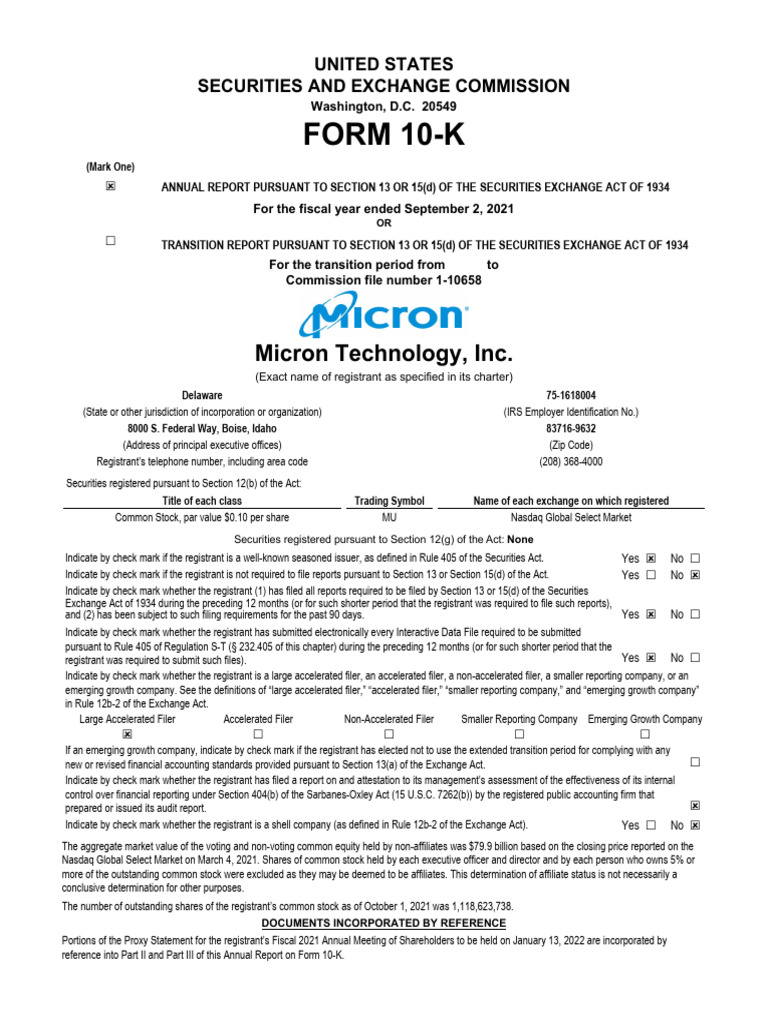 1. I have reviewed this Annual Report on Form 10-K of Micron Technology, Inc.;