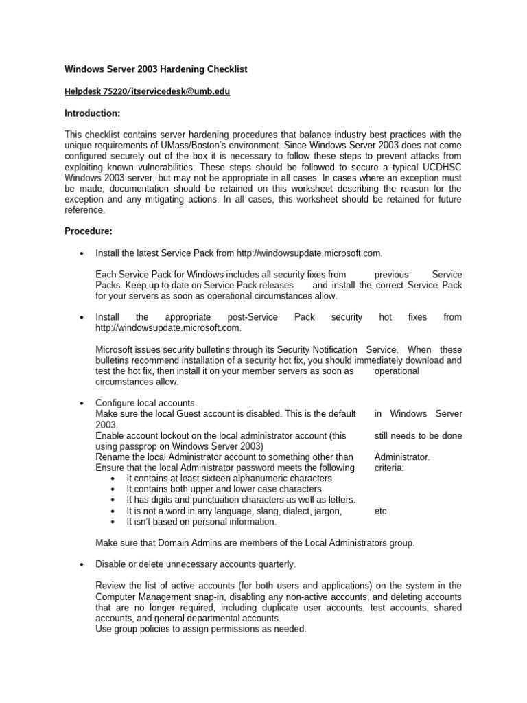 Windows Server 2003 Hardening Checklist