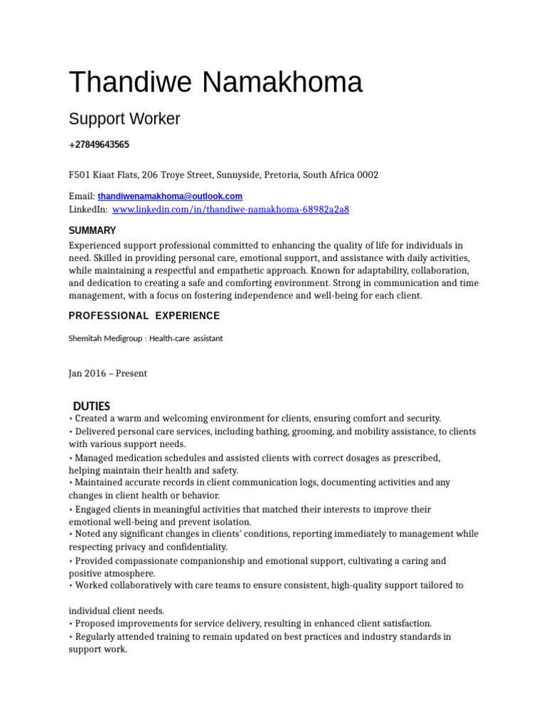 need. Skilled in providing personal care, emotional support, and assistance with daily activities,
